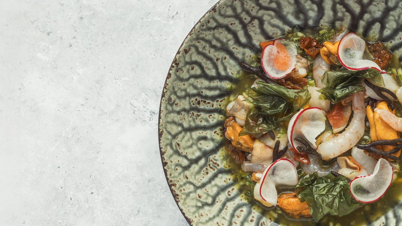 What stuck out to me the most about my travels around the world were those fresh, acidic and spicy flavors present in raw and cooked meat and fish, even in some stews. Para acercarnos al Mediterráneo, hemos cambiado los zumos de lima por zumos de mandarina o vinagres de Jerez infusionados, o los ceviches por escabeches en crudo.